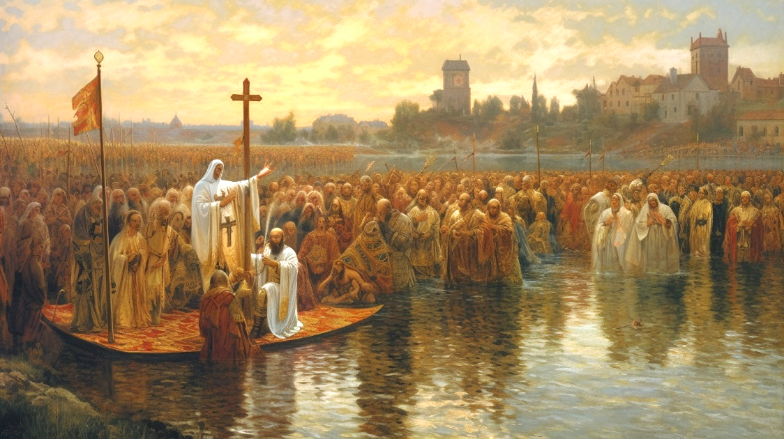 Dates: 966 CE. Geography: Poland, centered in Poznań. Nations: Poland, Bohemia, Holy Roman Empire. Key Details: Mieszko I’s baptism in 966 marked Poland’s entry into Western Christendom, aligning it with Rome rather than the Holy Roman Empire’s influence; a missionary bishopric was established in Poznań, integrating Poland into European culture. Legacy: Anchored Poland in Western civilization, fostering its political and cultural development. Remark: Widukind of Corvey, a 10th-century Saxon chronicler, observed, “Mieszko’s baptism brought a new people into the fold of Christ, strengthening the Church’s reach.”