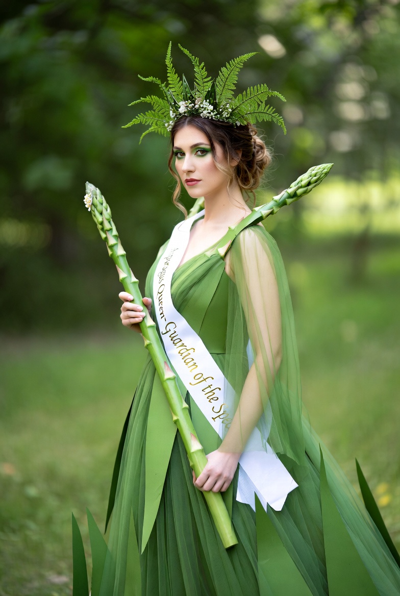 Asparagus Queen Pageant — Each Sunday serving features a crowned Queen, volunteer, staff, or lucky guest, who processes dramatically with a ceremonial bundle of spears to the kitchen, greeted with applause and lute music. She then enjoys a complimentary royal meal at a prime table! If you wish you make bow to her and kiss her green scaly hand.