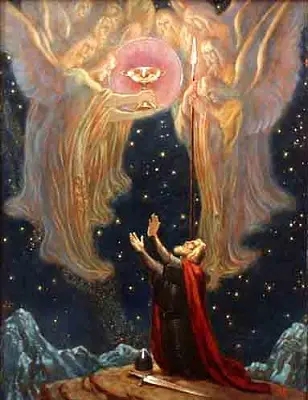 However, the ancient knowledge and the great mysteries still existed in some individuals; through dreams and visions, these men were called Initiates. One such Initiate was King Titurel, The Nobel. Bestowed upon him were visions of the Holy Grail, the cup that gives everlasting life. The heavenly angels charged him with keeping both the Holy Grail and the Spear. His vocation was to build the Holy Grail Temple and found its Protectors. They became known as The Order of Knights of the Holy Grail.