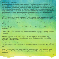 December – Advent- St. Nichols Day, Santa Lucia, Saturnalia Artist’s Festival, Immaculate Conception Circle of Stars Divine Sophia, Christmas Plays, Winter Solstice, Christmas Eve and Day, New Year’s Eve Ball.