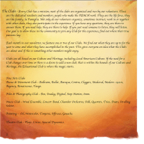 Clubs are all based on our Culture and Heritage, including Local American Culture. If the need for a Club changes over time or there is a desire to add a new club, that is within the bounds of our Culture and Heritage, the Educational Club is where the magic starts.